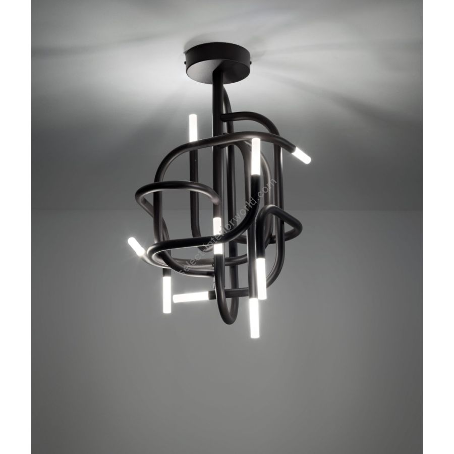 Just as mangrove plants are known for their twisted roots, Mangrove derives its strong decorative identity from the non-random intertwining of the tubes that compose it. Constantly varying directions, softened by identical connectors, combine with luminous terminals, reinterpreting nature through a technical lens and generating continuously new and intriguing variations of light and reflections.
