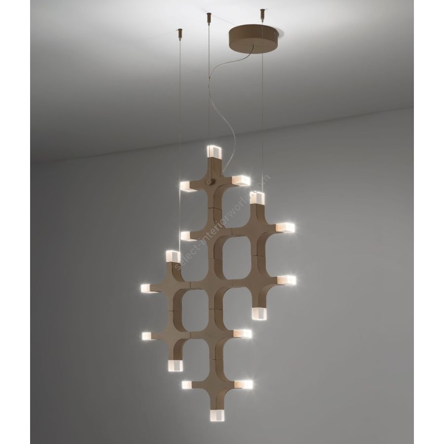 With its continuous variations in luminous density and the interplay of solids and voids projected on both horizontal and vertical planes, it illuminates and decorates any location with a distinctive style, thanks to its scenographic impact and limitless possibilities for aggregation