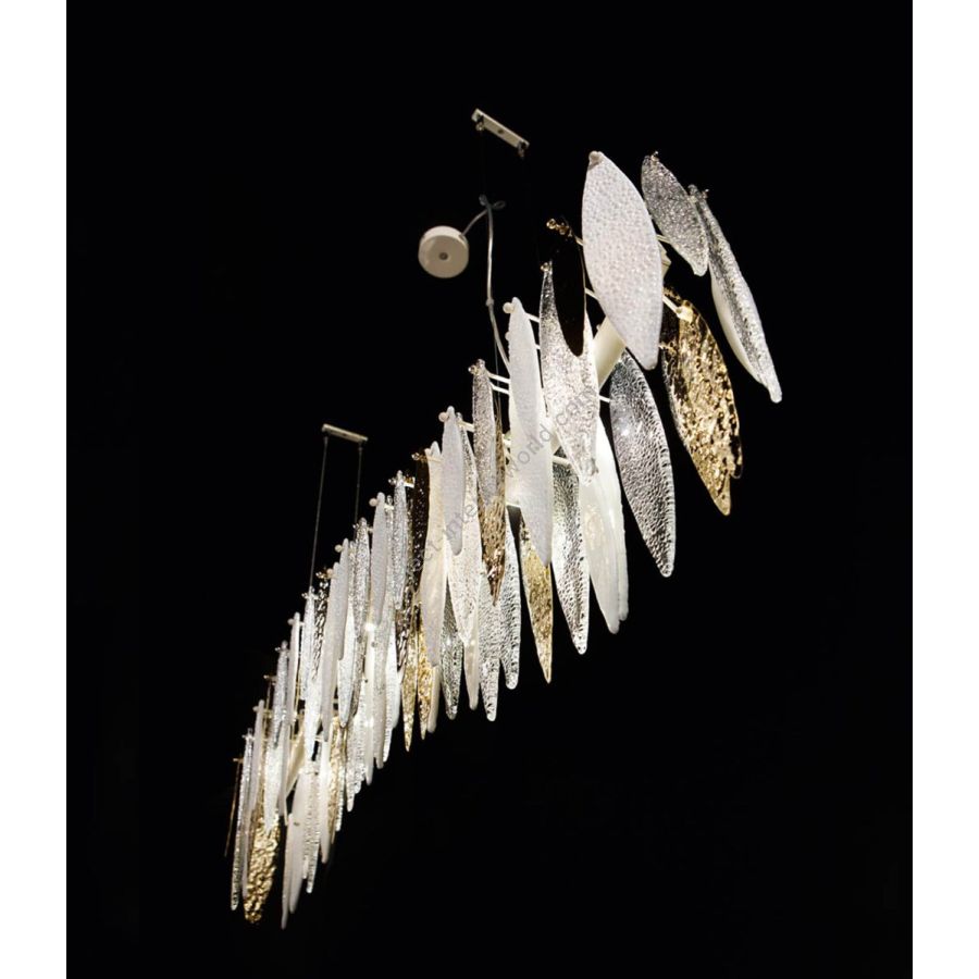 B. Leaves in crystal Murano glass with light gold metal leaves with hammered effect.