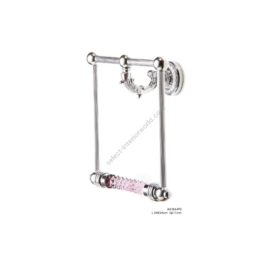 Square Towel Holder in brass and pink italian hand-cutted crystal. Functional elements that create an extremely elegant, welcoming and high-value bathroom.