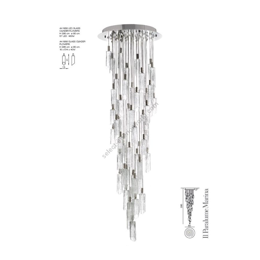 Cascade Chandelier with Murano glass cylinder flowers. Lighting item that diffuses the light with great effect in the surrounding environement creating a warm and welcoming atmosphere.