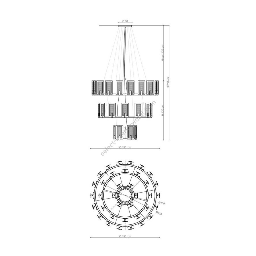 Bulbs: 36 x G9 x Led| Dimensions (HxWxD): | cm: 130x150 / inch: 51.18"x59.06" |