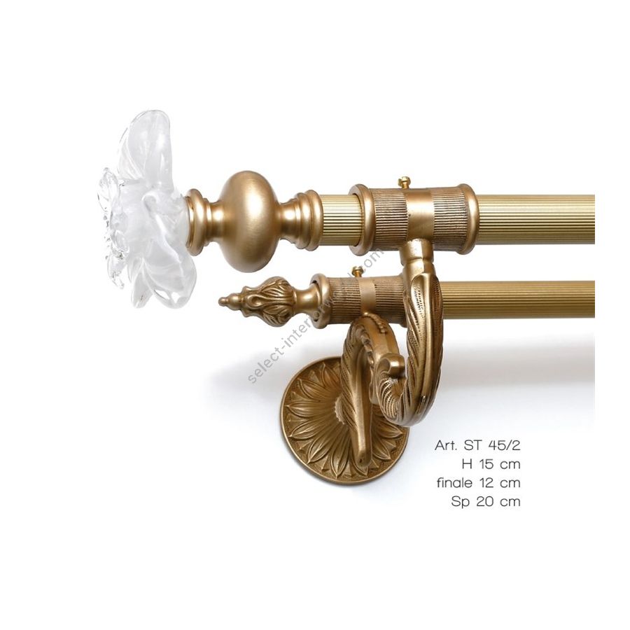 SET CATS' EYES Double curtain pole in brass and Murano glass flowers - Finishing: OV. An element of great stylistic value that makes the environment extremely elegant and refined