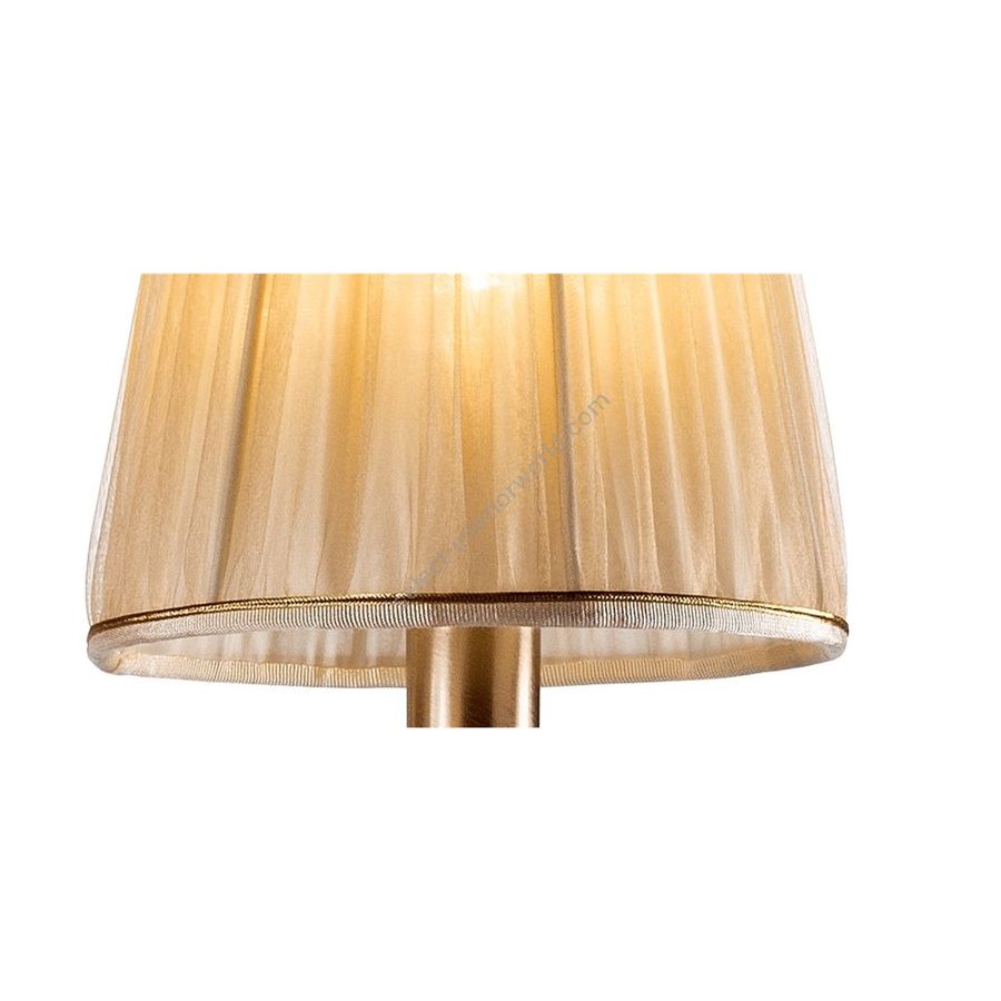 Curled truncated cone lampshade, white PVC interior and smooth fabric exterior. Upper and lower gold trimmings.