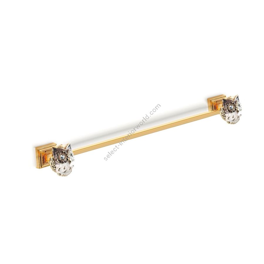 Towel holder in gold 24k with micro casting of enameled brass OWL. Functional elements that create an extremely elegant, welcoming and high-value bathroom.
