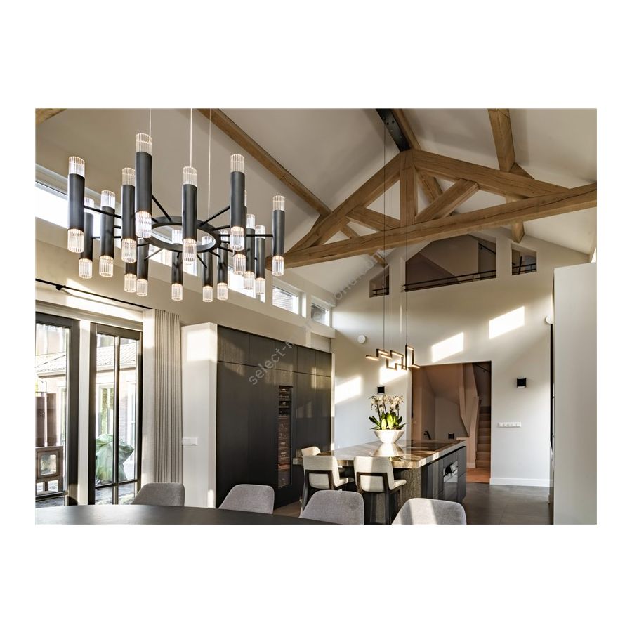 Per example, we have a beautiful elongated light fixture in our Embrace collection, which is a perfect luminary for long dining tables. This collection also includes luxurious chandeliers in a variety of sizes, all featuring beautiful, high-quality glass. The most recent addition to the collection, called Embrace Linear, provides additional options to the existent range of designs.