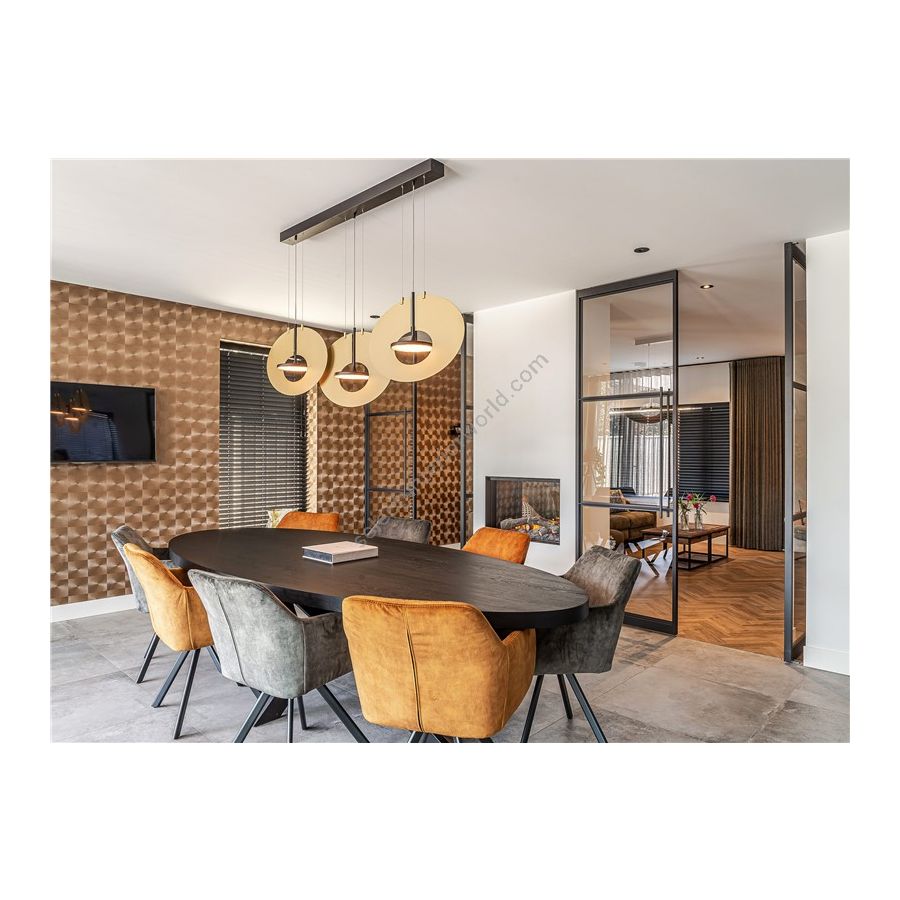 The design of the Eye in the Sky is stylish, minimalistic and completely balanced. This luminary is a real asset for both modern and classic interiors. The oval discs are made of premium anodized aluminum, either in matt gold or matt silver. The collection includes various lighting designs, including ceiling fixtures which are customisable in layout and quantity, and gorgeous floor luminaires.
