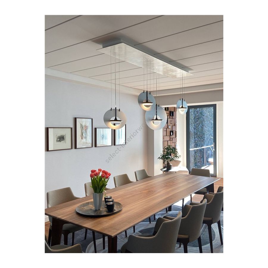 The design of the Eye in the Sky is stylish, minimalistic and completely balanced. This luminary is a real asset for both modern and classic interiors. The oval discs are made of premium anodized aluminum, either in matt gold or matt silver. The collection includes various lighting designs, including ceiling fixtures which are customisable in layout and quantity, and gorgeous floor luminaires.