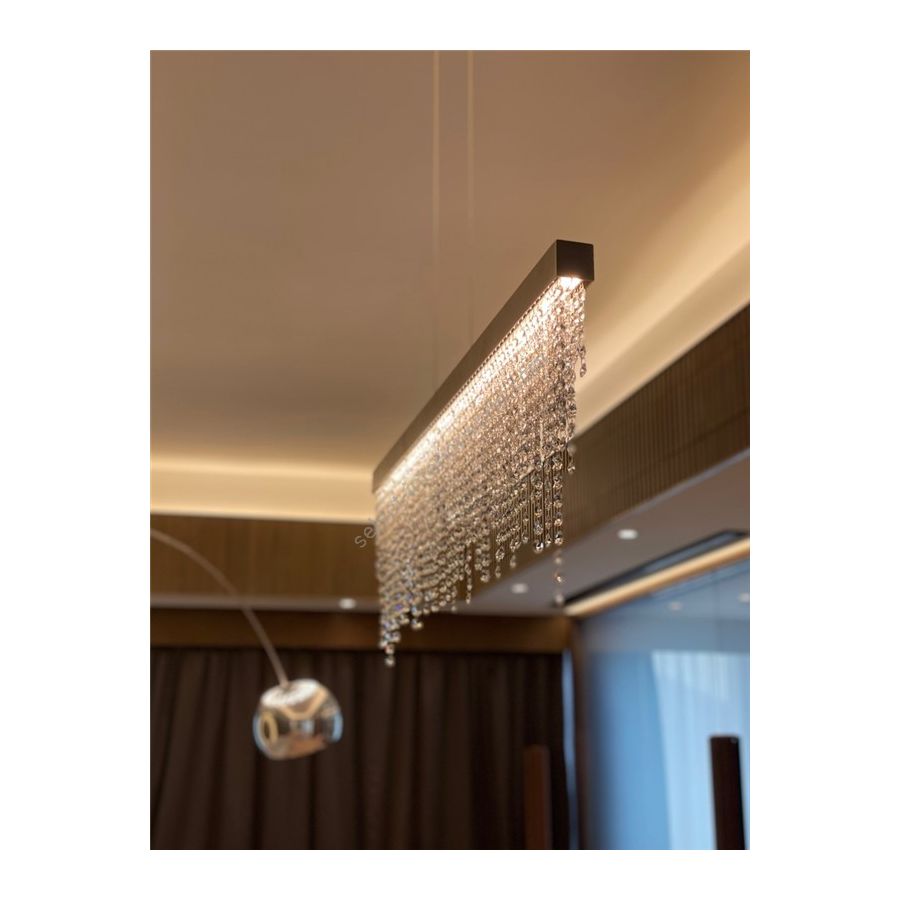 The Frozen Eyes collection brings an elegant combination of metal and crystals, which creates the associations of a waterfall. The design is best described as simple and chic. The Frozen Eyes collection is robust and eye-catching. It is a linear yet abstract design, of which the presence can illuminate a room with a beautiful shimmer. There are many possibilities regarding the Frozen Eyes collection. These include various chandelier designs, as well as wall fixtures. Each collection piece is crafted with the utmost care and precision, resulting in a beautiful finish each and every time.