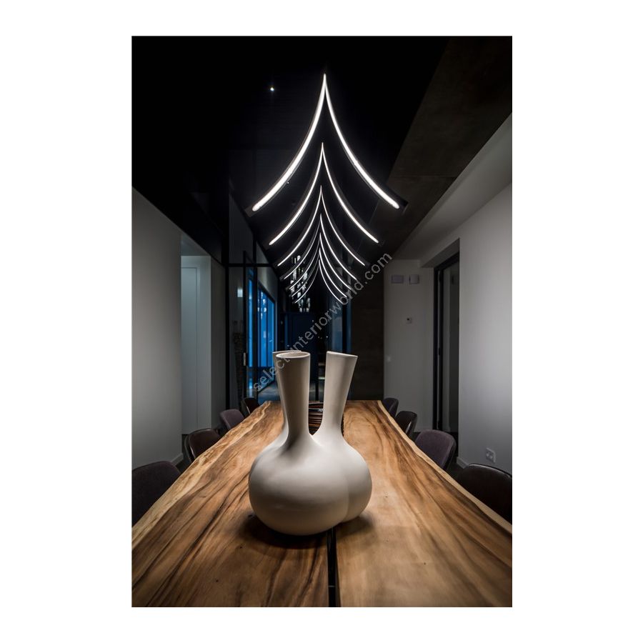 The Stream collection is best described as a modern, elegant and pure design with beautiful features. Inspired by a flock of birds, and designed in an abstract manner. Its shapes create an excellent synergy. It is where symmetry becomes unity and creates a warm, powerful and inviting ambient that accommodates many interior designs. The Stream collection a fine piece of high-end designer lighting, and a great conversation piece. The high-end designer luminary has many possibilities with various wall fixtures, and many possibilities regarding the ceiling fixtures.