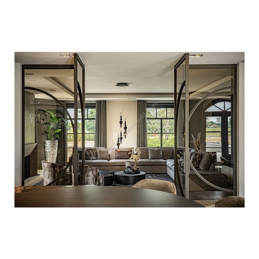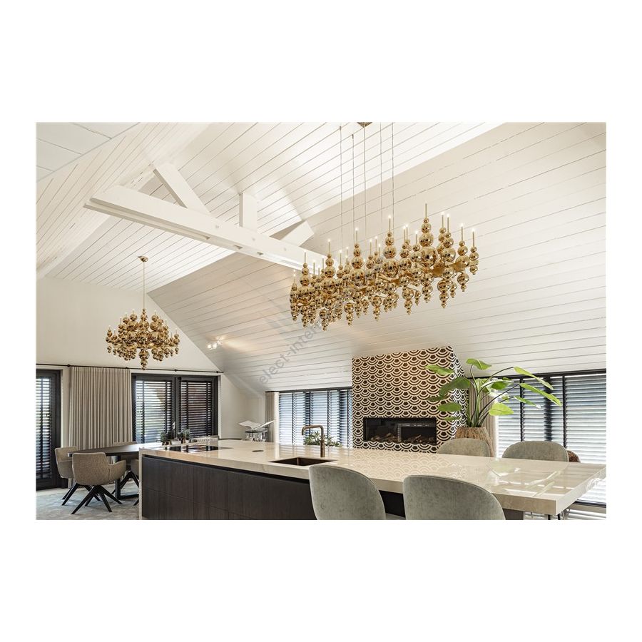 The Tears From Moon collection is able to cast away darkness, referring to the properties of lighting and the actual moon. The collection is the perfect combination of European high-quality materials and an eccentric design, handmade by specialists. Mouth-blown glass is customizable in different sizes and colours. Every colour and combination creates a different atmosphere. The glass is to be combined with refined metalwork in various finishings and either up- or downlight, or both. In addition, there are several options with details in glass, which can give the lighting an extra luxurious look.