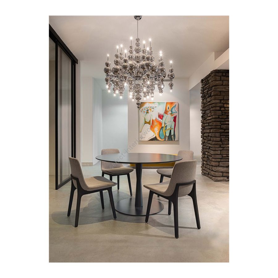 The Tears From Moon collection is able to cast away darkness, referring to the properties of lighting and the actual moon. The collection is the perfect combination of European high-quality materials and an eccentric design, handmade by specialists. Mouth-blown glass is customizable in different sizes and colours. Every colour and combination creates a different atmosphere. The glass is to be combined with refined metalwork in various finishings and either up- or downlight, or both. In addition, there are several options with details in glass, which can give the lighting an extra luxurious look.