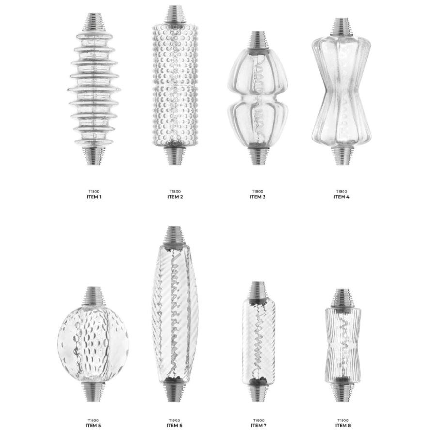 Innovative modular system designed by Marc Sadler for Italamp, consisiting in blown glass elements in different shapes and colours.