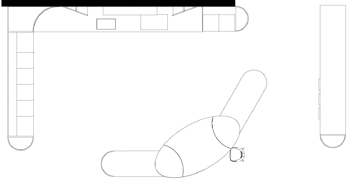 Bespoke kitchen project. Equipped columns and base units, worktop with rounded edges. Islands with integrated Snack Bar and luminous back panel. Plain boiserie with niches.