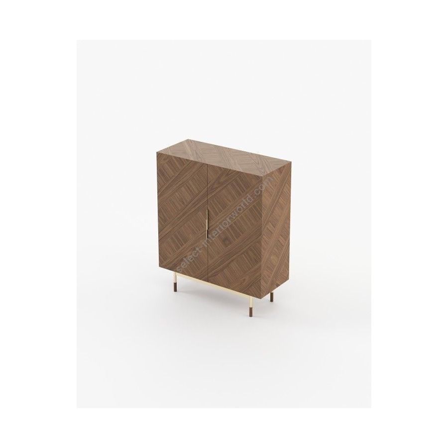 Claud cupboard is ideal for storing glassware or exclusive liquors. This vintage style cabinet features a gold structure and two doors with metal handles. This extremely versatile cabinet has a striking geometric wood body, perfect to any living or dining room.
