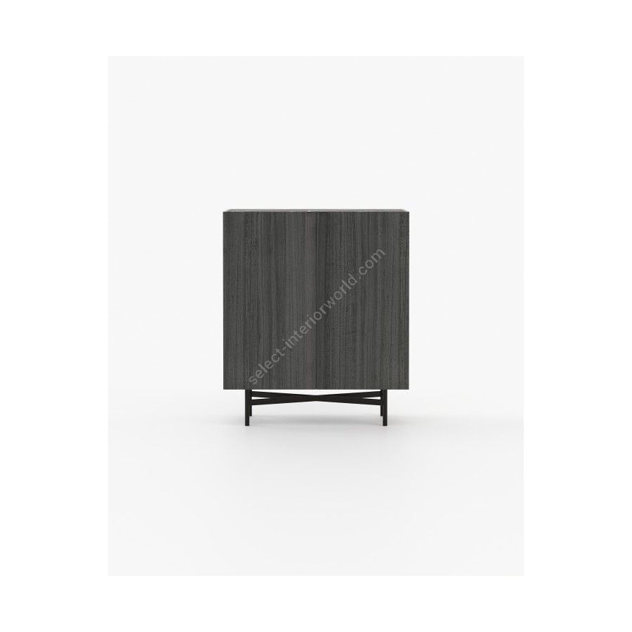 The Lewis bar cabinet was created to fulfill the needs of clients seeking the best in contemporary furniture. It features two large doors, several shelves, a metal base with crossbars, and a marble top. It is perfect for storing the finest liquors and distilled spirits.