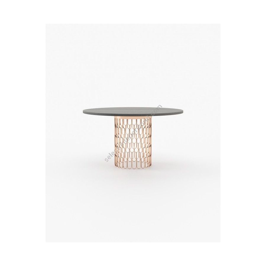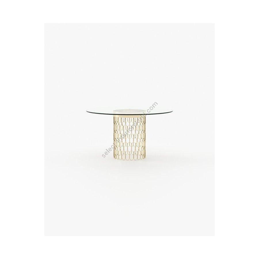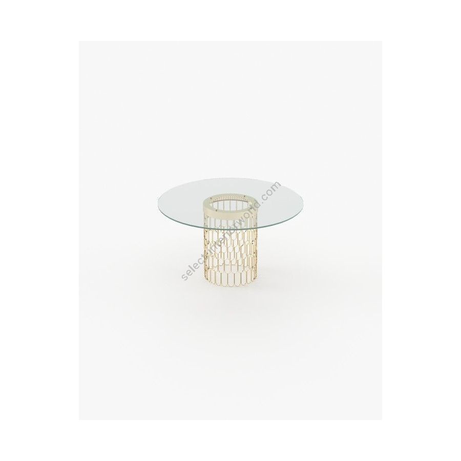 Brenda dining table is a glamorous piece, designed for modern dining rooms. The round glass countertop sits atop a stunning cylindrical structure.