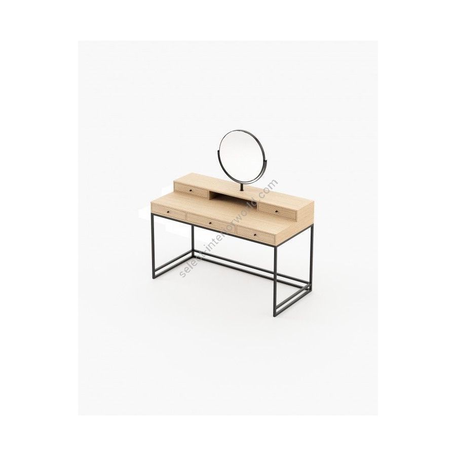 D'Arc dressing table features five drawers, one round mirror and a large surface area to make sure you will have everything in hand for your beauty routine. Built-in smooth wood and striking metal, this is the perfect piece for a feminine bedroom with a sophisticated aura.