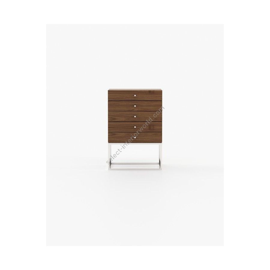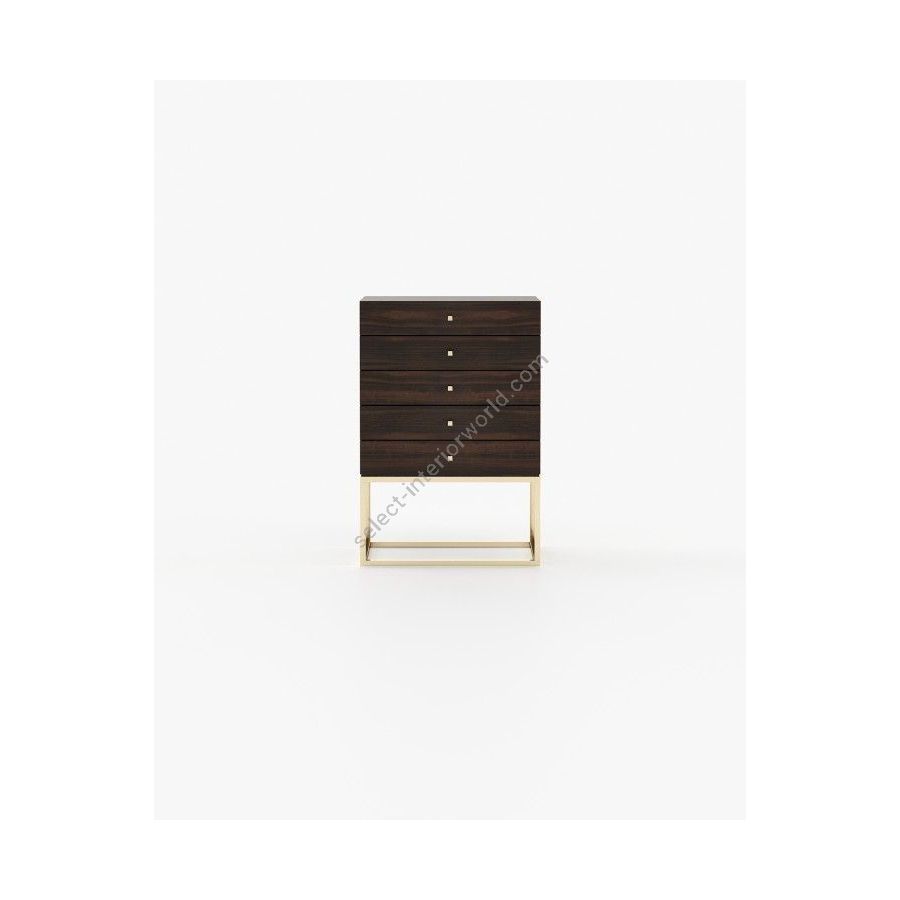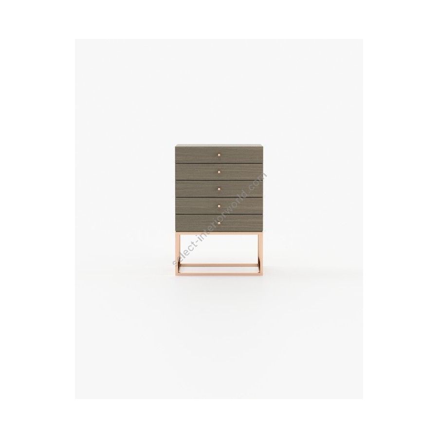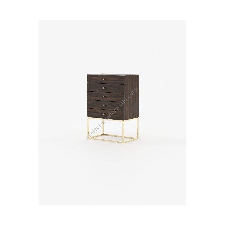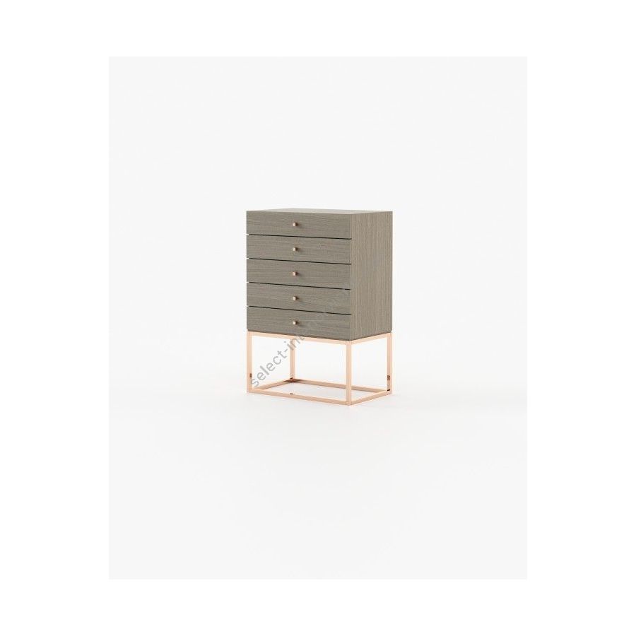 The Ester tallboy is a romantic piece for timeless aesthetic bedrooms, featuring five sleek drawers supported by a striking metal structure, providing balance to the bedroom with a graceful touch.