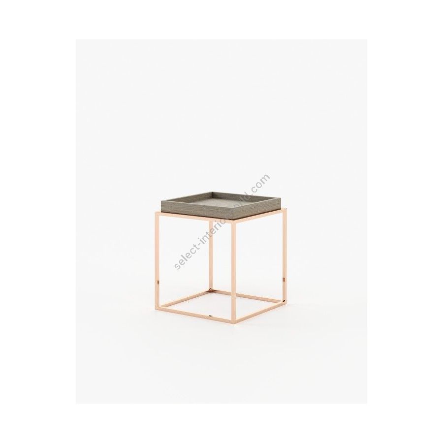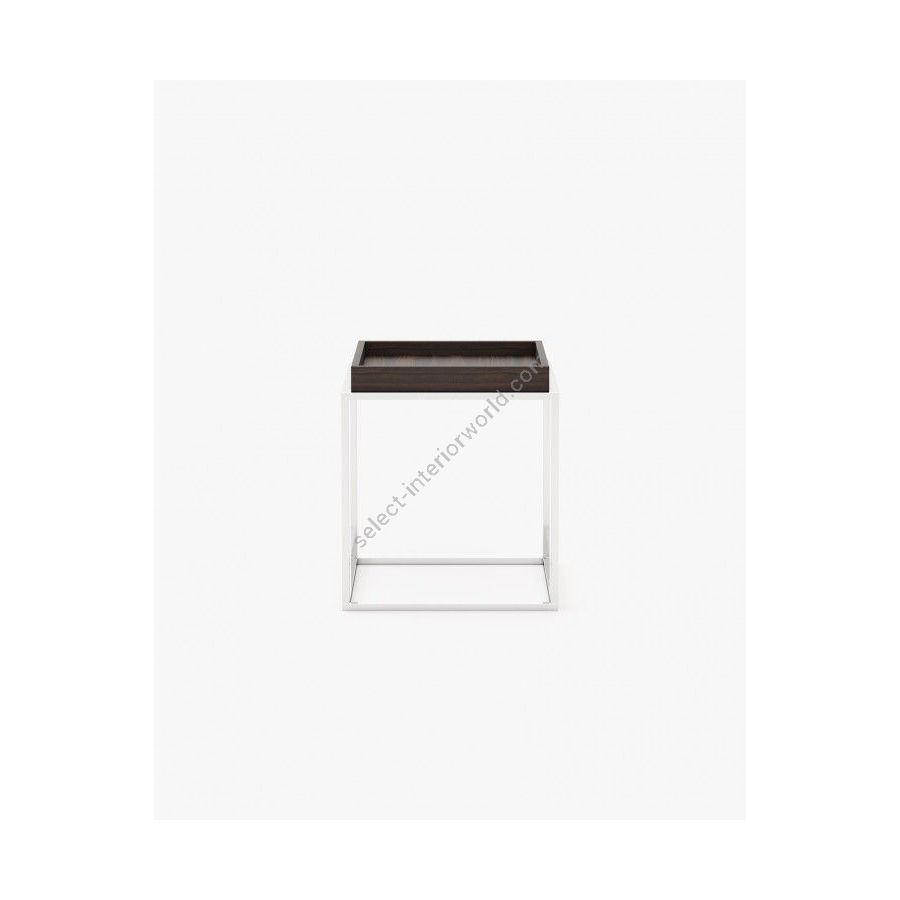 The Aura side table is an elegant home accessory, featuring a striking square shape and a natural wood finish, fitting any decor style.