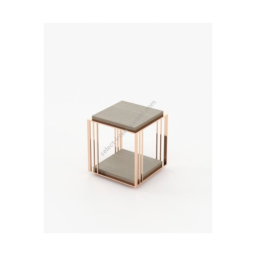 The Megan side table is a classic piece with a wood top and metallic structure, ideal for timeless spaces with refined souls.