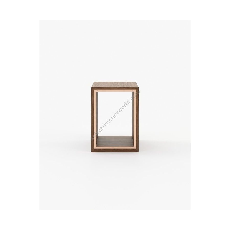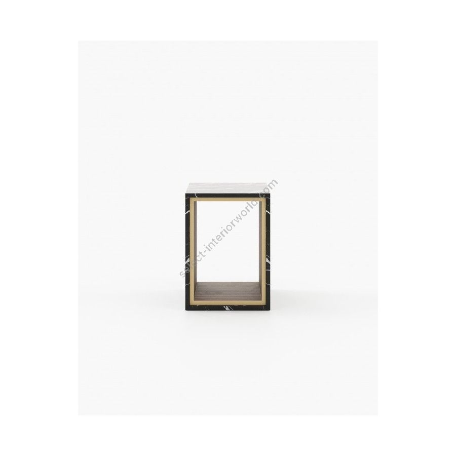 The Nilo side table is a unique and modern piece with a solid marble surface and a sturdy wooden interior, perfect for both living spaces and bedrooms.