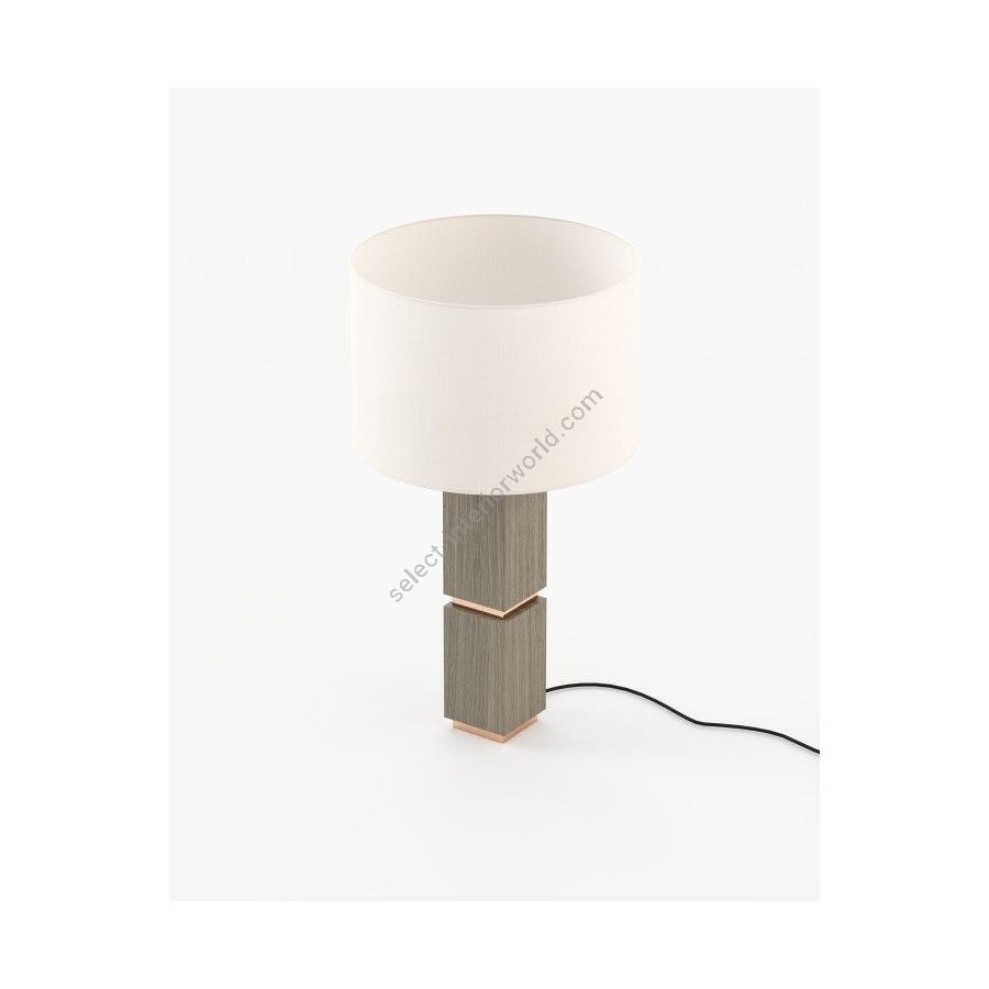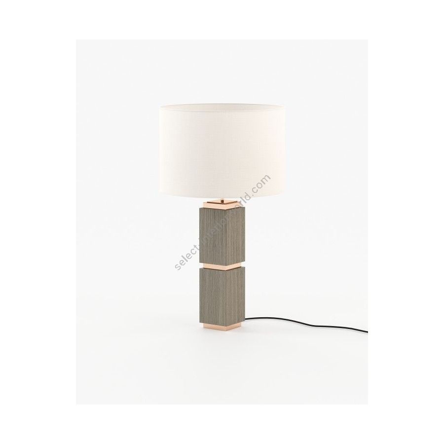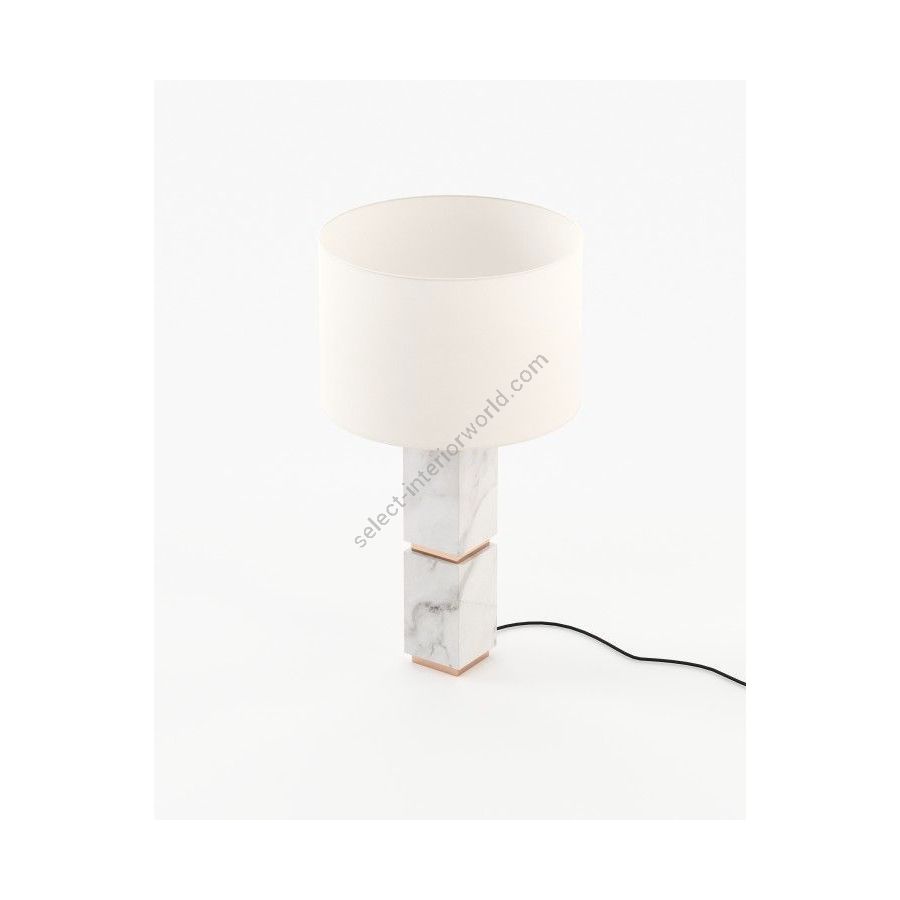Quentin table lamp is a handmade marble table lamp featuring metallic details and a square base with a round lamp shade for an interesting geometric contrast, perfect for entrance halls.