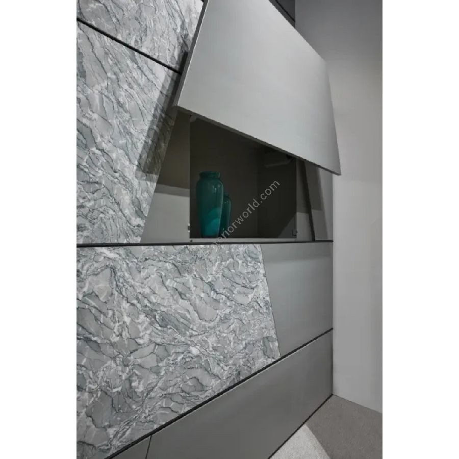 Customizable in all the essences of the collection, lacquered and aniline dyed in all RAL colours or in leather, the Terre cabinet system is available in combination with integrated wall panels and doors.