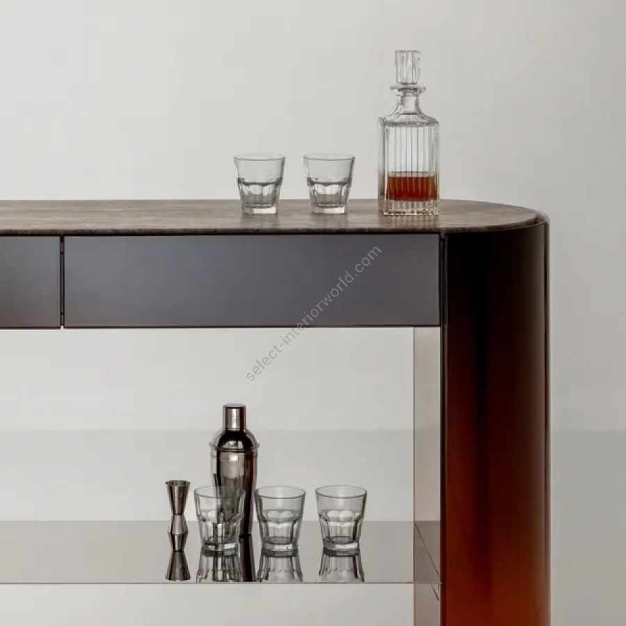 Available in plain, dyed, matte brushed lacquered, glossy lacquered, and glossy shaded lacquered wood. Customizable top in marble or wood.