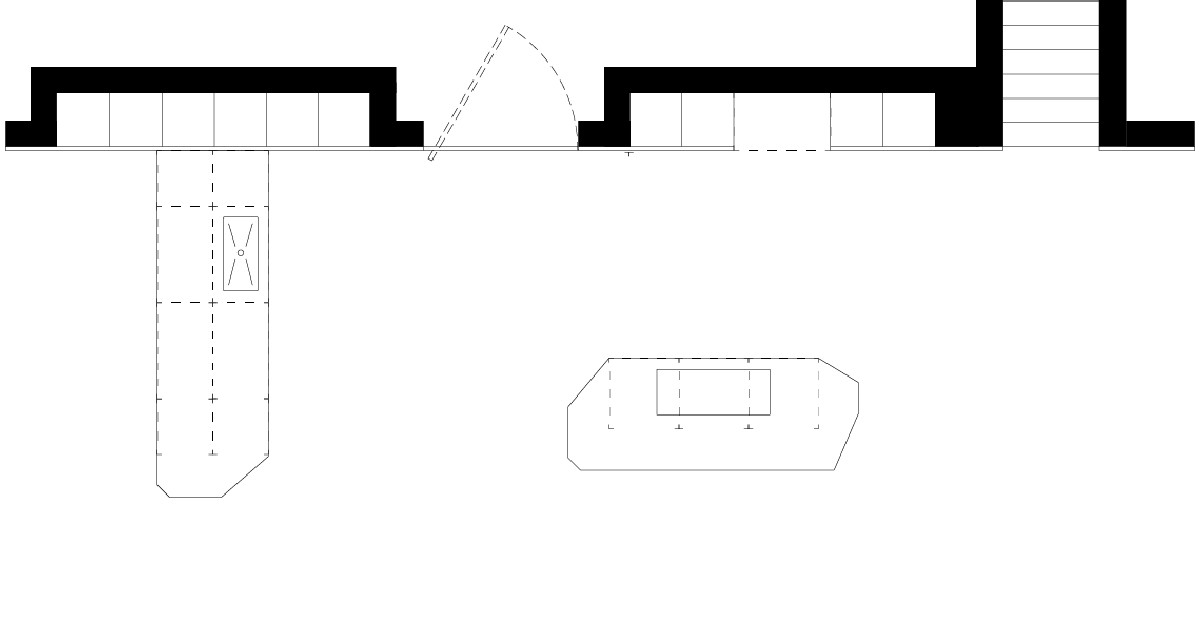 Bespoke kitchen project. Columns with niches. Equipped peninsula and prism-shaped island. Integrated Stars boiserie and door.