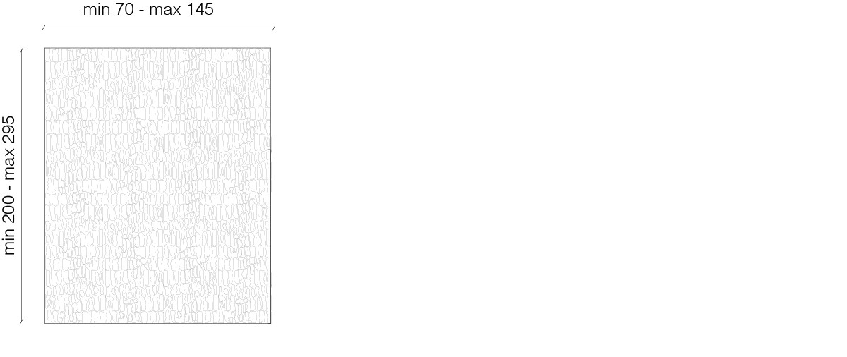 Pivot door in wood with Liquid Metal finish and Corteccia texture on the visible side. Metal handle carved into the thickness of the door.