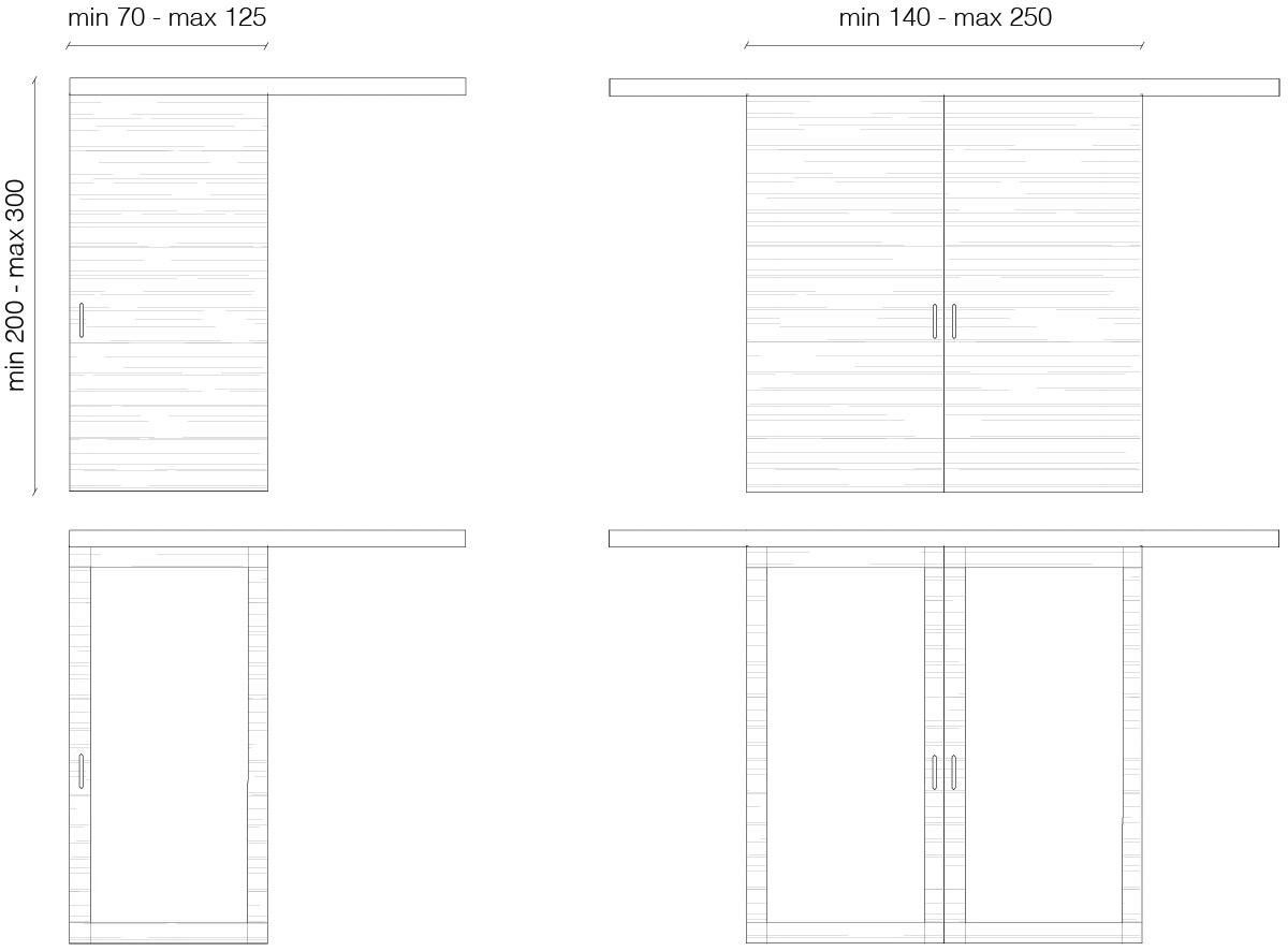 Sliding door in carved wood with horizontal or vertical Decor texture on both sides.