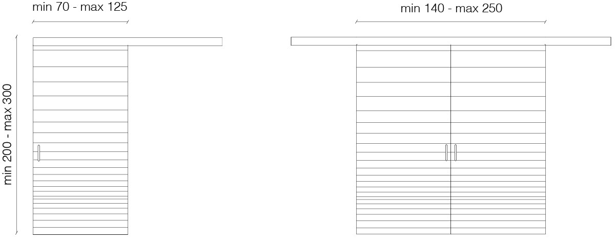 Blockboard sliding door, clad on both sides with with 1 millimiter metal bands of different sizes.