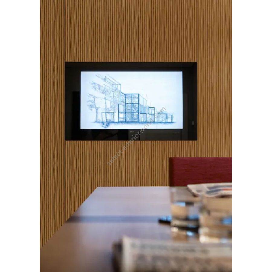 Made to measure wall panels in wood with horizontal or vertical Onda carving on the visible side.