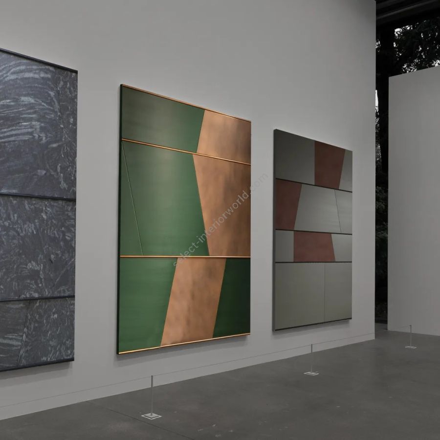 Customizable in all woods of the collection, in special wood, in dyed, aniline-dyed, and brushed matte lacquered wood in all RAL/NCS colours. Also available in brass, marble, ceramic, gommalacca (shellac), and with mirrored panels.