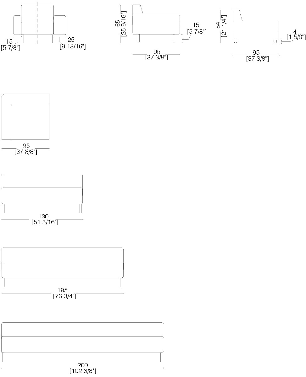 Modular seating system, available in custom modules and dimensions, and combinable with different base, seat, backrest and armrest models.