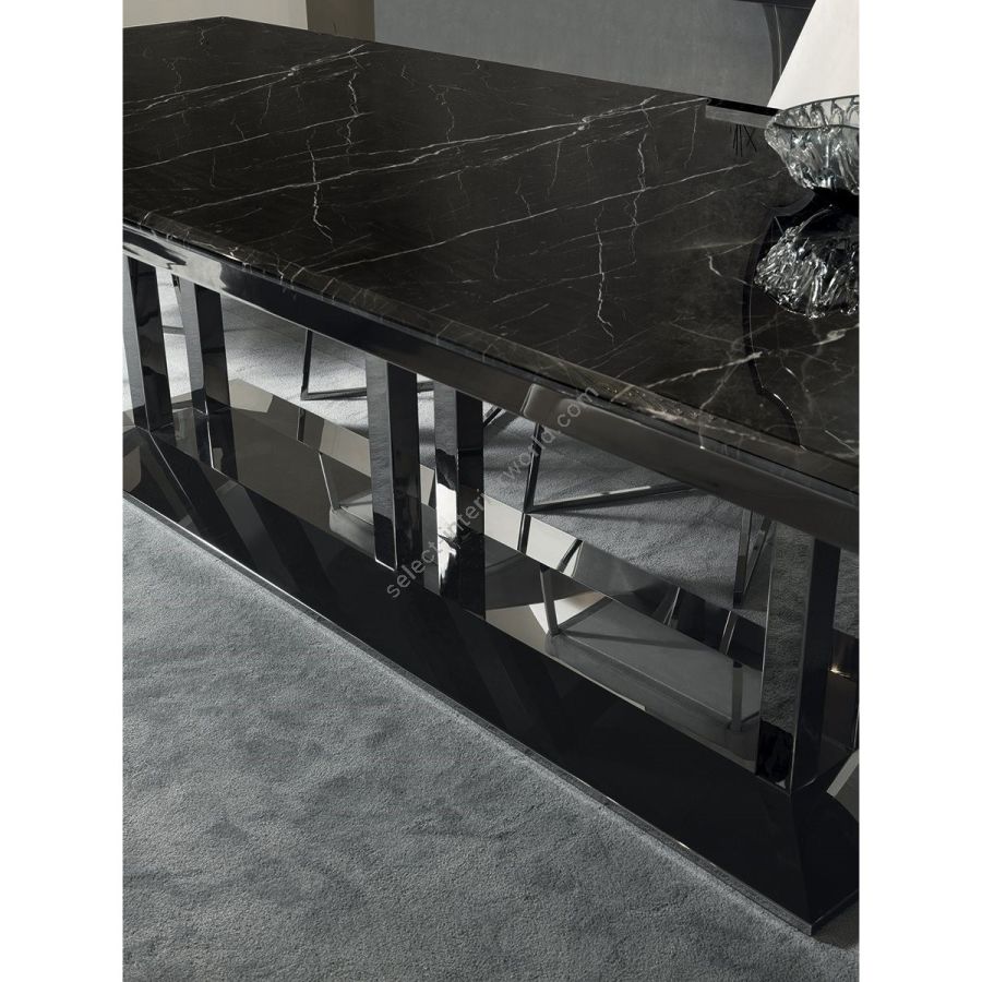 A collection of tables of all sizes and a console with an important skeleton in laser-cut ground steel that supports a top in marble, crystal or mirror. This table, with its purposely solid design that distinguishes its strong personality, can add style and elegance to any room and create a harmonious composition with all of the chairs in the Longhi collection.