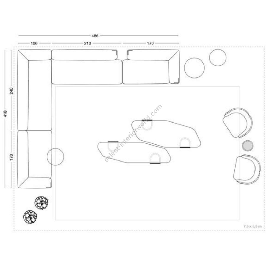 Sofa made up of elements with simple lines, ideal for linear or semiangular compositions. The open armrests and backrests have a chromed metal plate set into them, which enhances the curves in the various elements. This plate comes in the finishes: Shaded copper, Bright shaded brown, Black Rose gold, bright light gold, Champagne gold, bright chrome, bright black chrome, matt satined bronze. Comfort is a major priority for this piece. Special polyurethane foams were mixed together to provide softness, resilience, and crush resistance. The seats are supported at the base by special elastic PVC slats, in turn supported by a solid wooden structure. The most significant characteristic is an exclusive quilted “Groove” decoration that, on request, can decorate the front part of the various elements. Made by hand, it gives the product a three-dimensional effect and accents its exclusive originality. A series of decorative cushions in various sizes and finishes complete the collection. Given the particular assembly of the product, the upholstery is NOT removable.