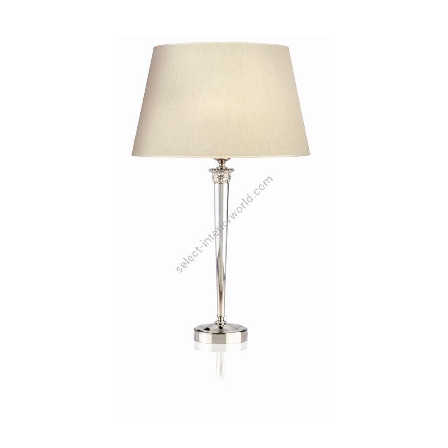 With structure in polished nickel finish brass and conical lampshade in off-white fabric it is perfect for lighting bedside tables and desks.