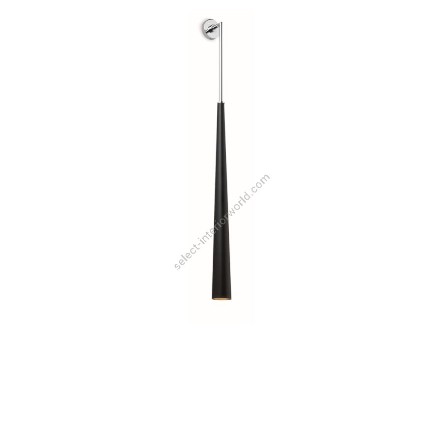 A vertical structure with an extremely elongated conical shape distinguishes this elegant wall lamp.