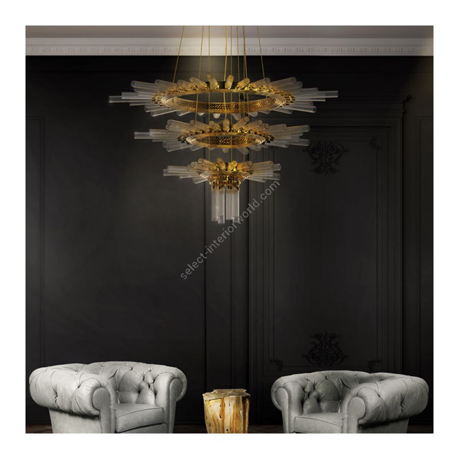Our Majestic Chandelier enhances a romantic and daring form perfectly able to adapt itself to any ambiance or style. The combination of traditional techniques and a selection of high quality materials results into an uncommon gold plated and crystal glass beauty that astonishes and empowers its surroundings.