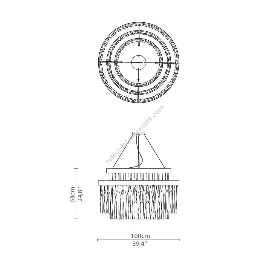 The circular gold plated brass levels of the Babel Suspension brings elegance to any luxurious ambiance. The exclusive uneven shape of each crystal glass made by the craftsman's exceptional know-how creates a unique pattern of lighting refraction. An impressive object of desire.
