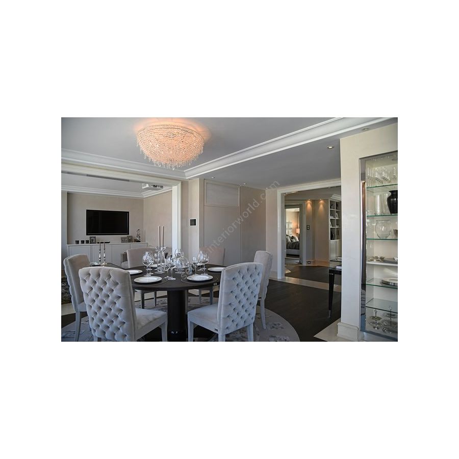 The sparkling hemisphere of Iceberg crystal chandelier is a radiant fountain of light casting streams of crystal refractions from every angle. Evoking the jagged contours of glaciers, its faceted surfaces capture and reflect natural light with exquisite brilliance. Renowned for its intricate artistry and exceptional versatility, Iceberg chandelier is available in a variety of sizes, crystal color combinations, and forms. Popular options include the hemispherical version, the oval variation, and the cone-shaped Iceberg Deep. Whether adorning grand hotel lobbies, ballrooms, or high-end living spaces, Iceberg is destined to become a captivating centerpiece and bold statement of sophistication in both classic and modern interiors. In addition to our standard premium crystal selection, Iceberg crystal chandelier is available with 100% Swarovski® crystals.