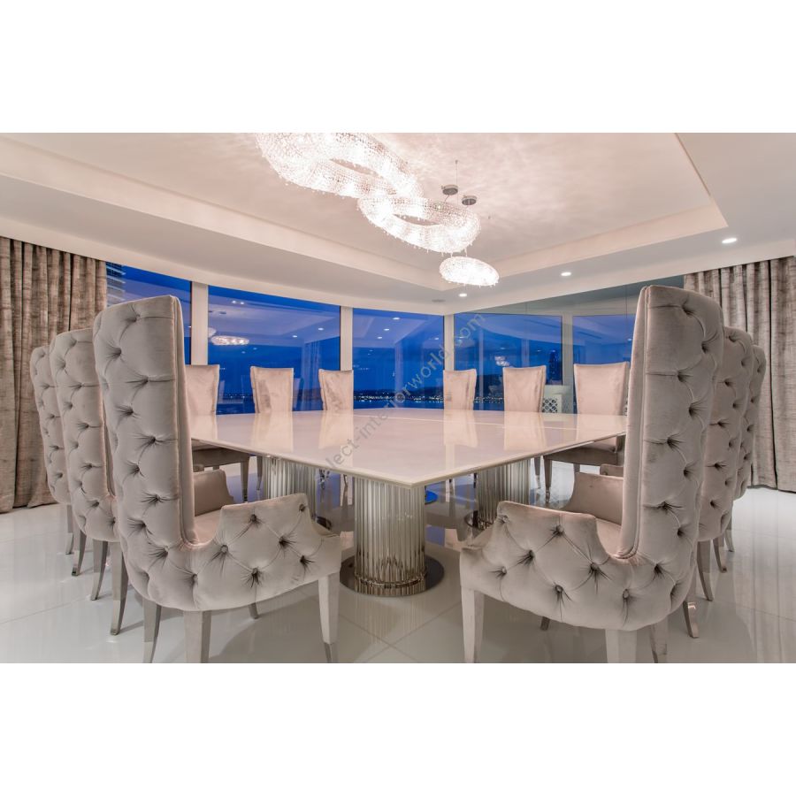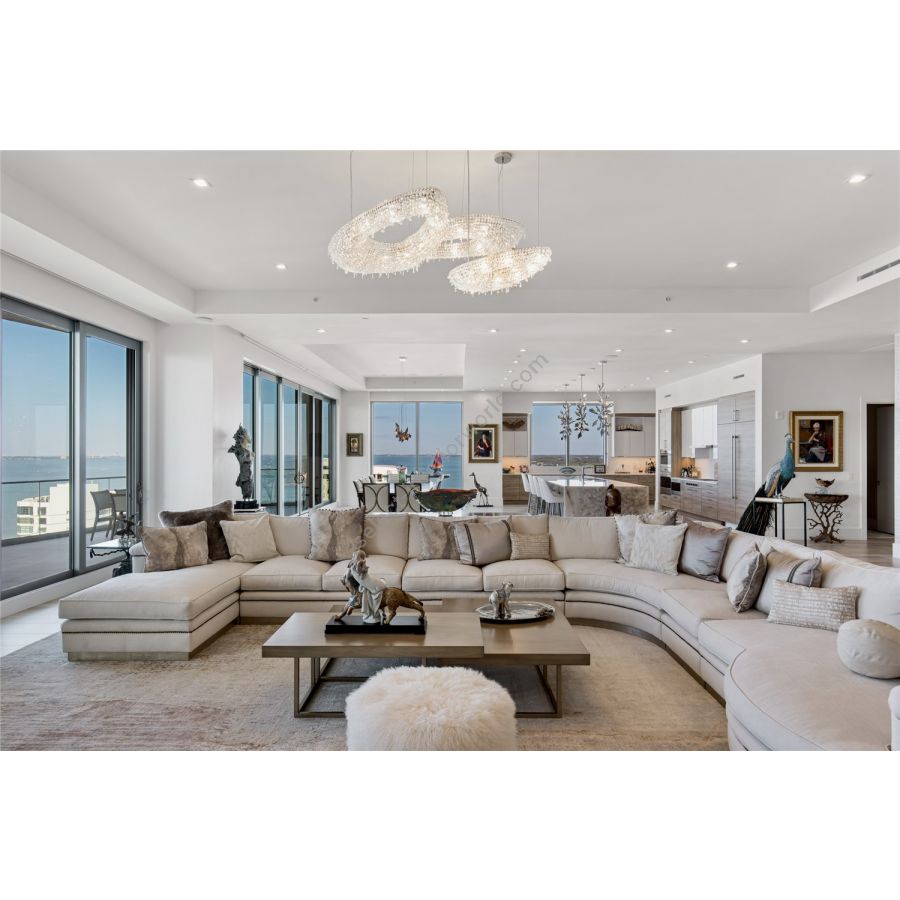 Polaris is a spectacularly dense crystal chandelier that captures the richness of minerals and the radiance of stars. Its unconventional shape marks a bold new direction in our chandelier design and craftsmanship. Perfect for solo installation or as part of a dynamic, multi-sized cluster, Polaris adds sculptural brilliance to any interior. Its intricate form accentuates the architectural depth of contemporary spaces, making it ideal for luxury hotel lobbies, grand lounges, elegant bedrooms, and dining areas. Polaris is available in various sizes and can be customized with harmonious combinations of colored crystals, offering versatile options for this cutting-edge design. In addition to our standard premium crystal selection, Polaris crystal chandelier is available with 100% Swarovski® crystals.