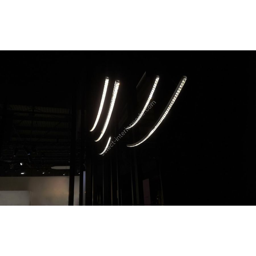 The Fineline crystal lamp evokes the graceful arc of a ray of light suspended in a moment of stillness. As a handmade crystal light, its slender curve embodies a minimalist, timeless aesthetic. Its refined geometry and intricate crystal detailing make this minimalist chandelier a versatile choice for a variety of interiors. Whether used as a standalone crystal lamp or arranged in dynamic compositions, Fineline offers endless creative possibilities. Its clean lines and contemporary design bring subtle luxury to modern spaces, while adding an unexpected touch to more traditional settings. Fineline is now available in a bespoke, ceiling-mounted version, ideal for spaces with low or dropped ceilings. This new variant preserves the chandelier’s signature elegance while expanding its applicability to diverse architectural settings, thus reinforcing its place within Manooi’s luxury crystal lighting collection.