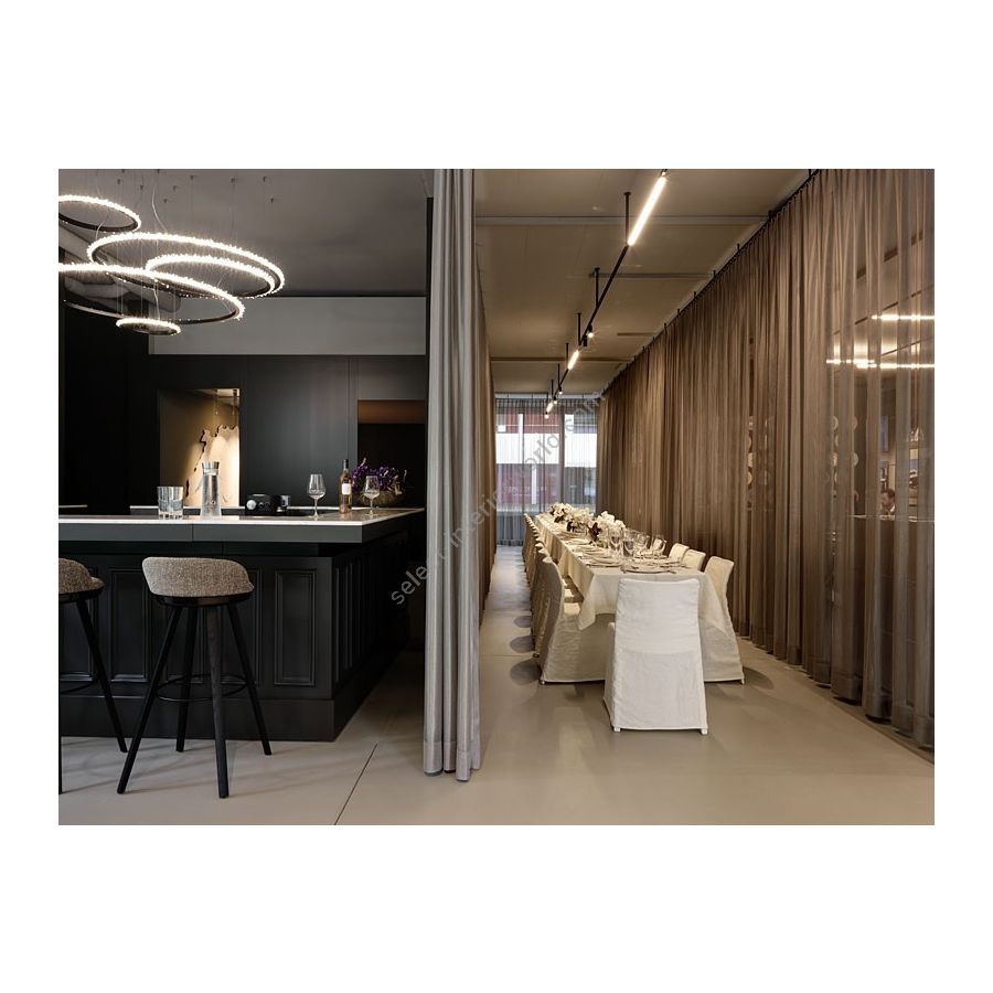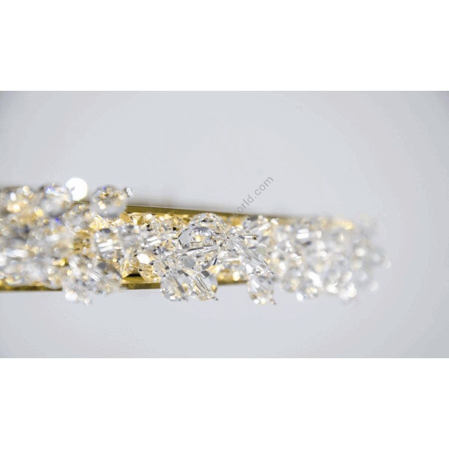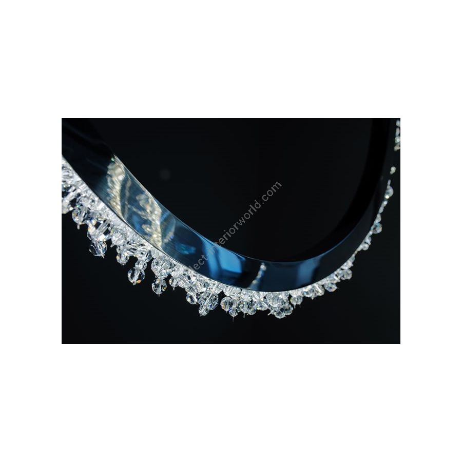 Halo crystal chandelier, inspired by the radiant glow of celestial bodies like the sun and moon, is designed to refract light with the brilliance of ice crystals in the atmosphere. Crafted with minimal materials and the precision of a handmade crystal chandelier, the Halo crystal lamp feels both weightless and substantial, as an embodiment of refined simplicity. Its crystals are arranged into delicate branches that resemble frosted rays, scattering light into a cascade of sparkles and creating a warm, radiant glow. This minimalist crystal chandelier invites viewers to experience the beauty of pure light. With its contemporary silhouette and clean geometry, this modern crystal lamp integrates effortlessly into both classic and modern interiors. The Halo chandelier can be installed vertically or horizontally, displayed as a single statement piece or in clusters, offering limitless versatility in luxury design settings.