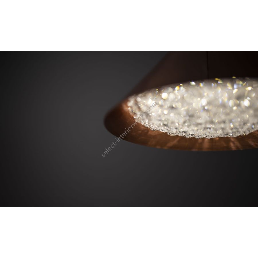 Origo Cone builds on the minimalist elegance of the original Origo pendant lamp, now reimagined in a smooth, refined cone shape. With its brushed copper lampshade and energy-efficient LED light source, Origo Cone crystal chandelierbrings warmth and glamour to any setting. Apart from copper, this handmade crystal chandelier is also available in black or white painted steel finishes. It comes in multiple sizes and two distinct cone silhouettes. Whether hung alone or arranged in striking clusters, Origo Cone offers endless creative possibilities to suit any interior style. Each crystal lamp is meticulously handcrafted and adorned with premium-quality crystals that add a subtle yet sophisticated sparkle to its streamlined form. Bespoke options are available upon request, allowing designers to tailor the Origo Cone to unique spatial and stylistic requirements.