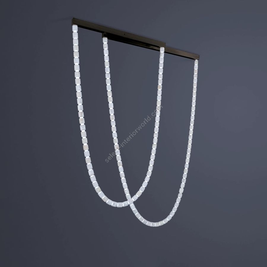 Jewel Ceiling: Crafted from the finest onyx materials and available in a variety of finishes to suit your unique style preferences, the Jewel Onyx Ceiling Light is a true testament to the power of design. The warm glow of the onyx gemstone imbues your space with a cozy and inviting atmosphere, while the latest LED technology ensures energy efficiency and long-lasting performance. With its exquisite onyx geometric forms that cascade from the ceiling, this luminaire creates a jewel-like space.