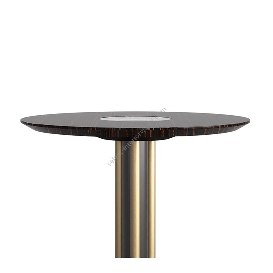 Classic coffee table with round top is made of Makassar wood and polished brass.