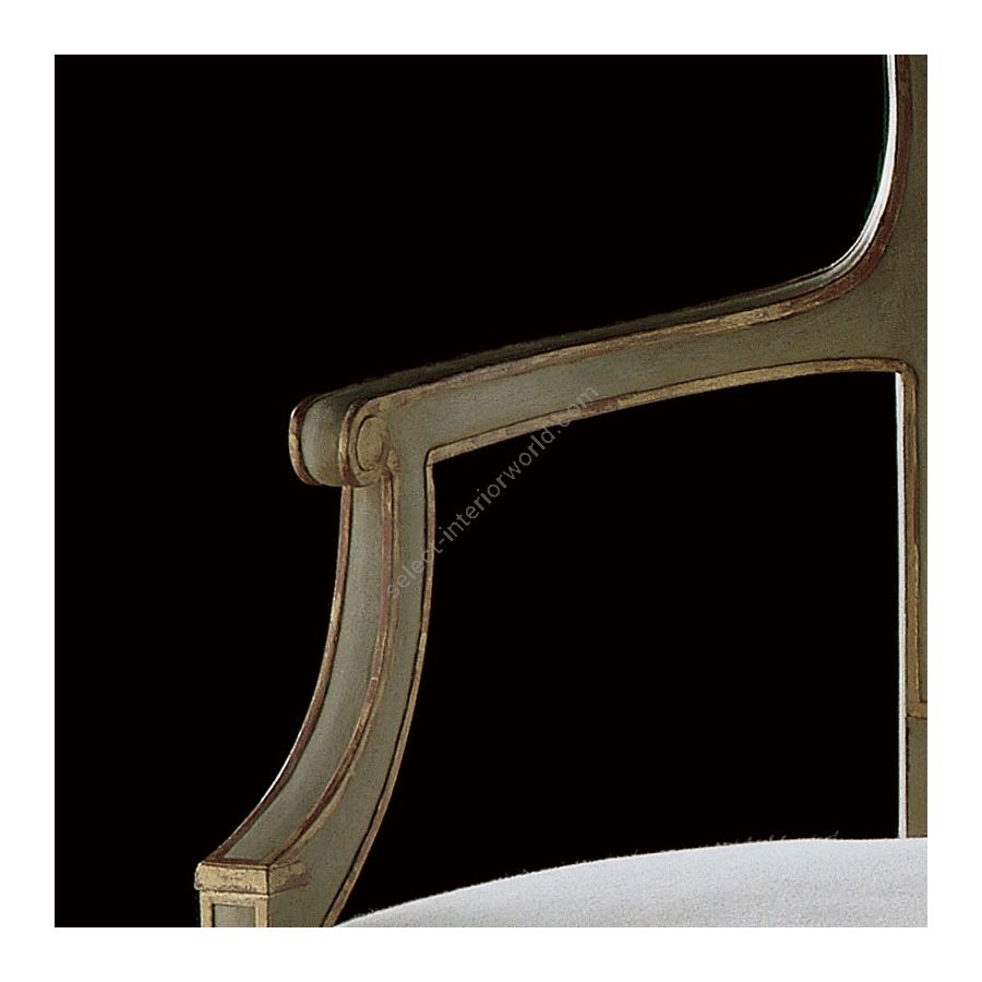 Reproduction of antique model. Directoire armchair, circa 1795. The elegant simplicity of the armchair brings it into line with the Directoire lyre and Provincial chairs, and its construction and ornamentation are the same as those of model DT2. The seat height and the set back hollowed moulding arm-rest supports mean that it can be used at a table.